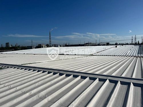 在整片屋顶喷涂一层防水涂料。常用聚氨酯或丙烯酸涂料。涂料固化后形成连续膜。覆盖接缝和螺钉。