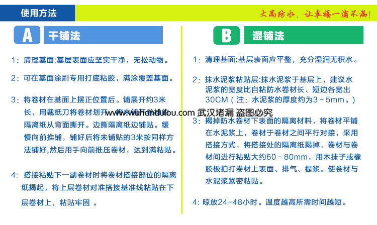 | 适用范围: | 工业与民用建筑物的屋面、地下室、室内、市政工程和蓄水池、游泳池以及地铁隧道防水。 | |||